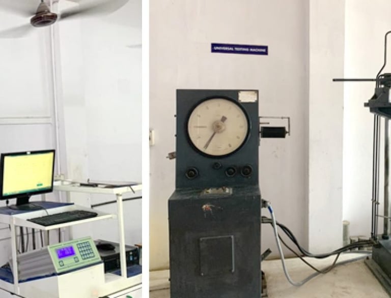 The Strength of Materials Lab is designed to help students understand the behaviour of materials under various types of loads. It provides hands-on experience in testing and analysing the mechanical properties of materials such as tensile strength, compressive strength, hardness, impact resistance, and elasticity. This lab plays a crucial role in building foundational knowledge for structural analysis and material selection in engineering design