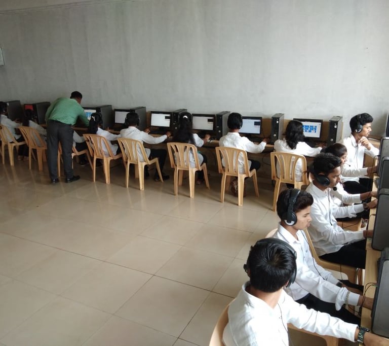 Purpose: Improving spoken English and communication skills. The Language Lab is designed to enhance students' communication skills, with a particular focus on improving their proficiency in English and other languages. It provides a structured environment for developing listening, speaking, reading, and writing skills through the use of modern audio-visual tools and interactive software.