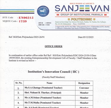 The Institution’s Innovation Council (IIC) is established as per the guidelines of the Ministry of Education (MoE), Government of India, to promote innovation and entrepreneurship among students and faculty.